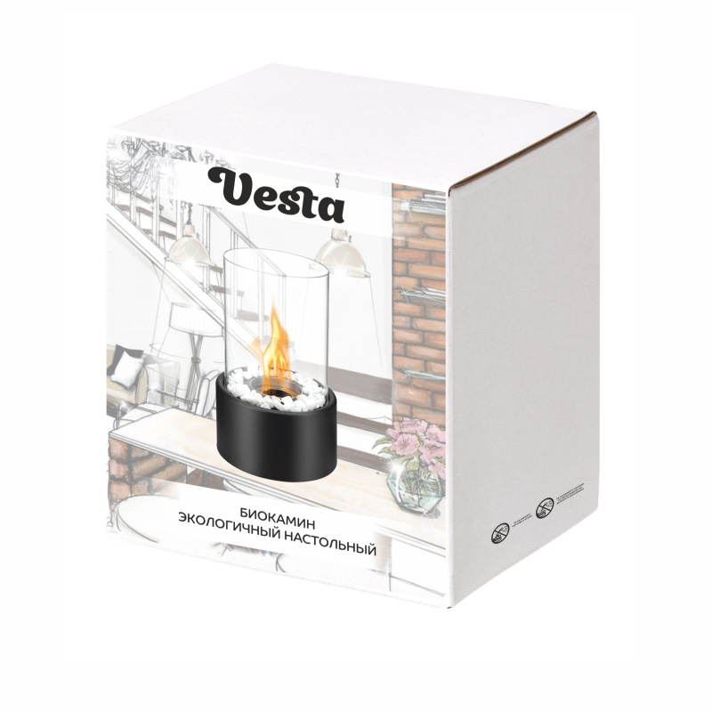 Биокамин Vesta отличный способ создать волшебную и уютную атмосферу домашнего очага! В качестве топлива используется экологически безвредный этиловый спирт. Долгое горение и стеклянная защита позволяют наслаждаться видом пламени в течение 60-90 минут, а легкая и практичная конструкция позволяет захватить камин даже в поход или вечерний романтический пикник.