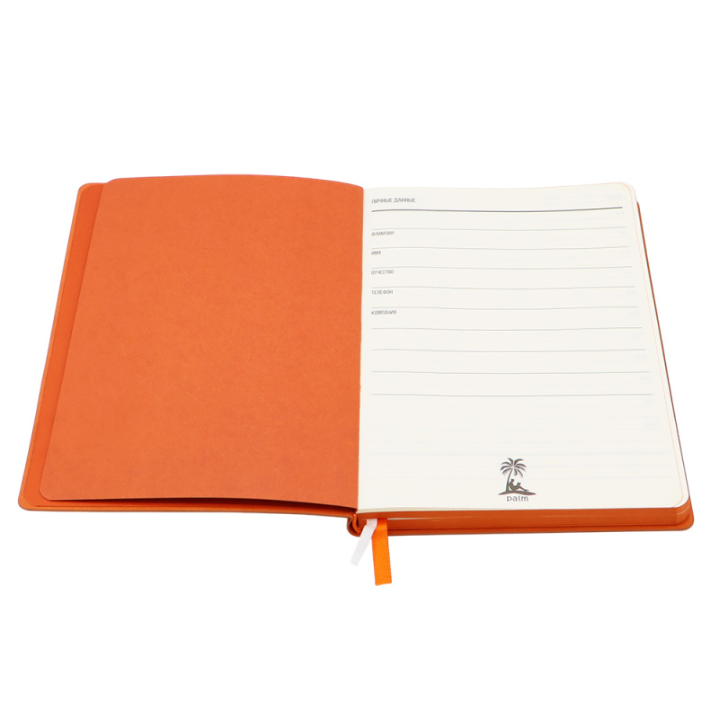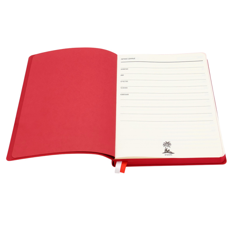 Высококачественный ежедневник Gabby в мягкой и приятной на ощупь обложке. Идеален для подарка! Удобный и стильный: закругленные углы, прокрашен в цвет ежедневника край, форзац и нахзац, а также одна из двух лент-закладок, вторая белая. Титульные листы — индивидуальные. Бумага в блоке — цвета слоновая кость. В начале ежедневника страничка с личными данными. Индивидуальная упаковка в термоусадочную пленку.Только вы, ваши мысли и PALM™.