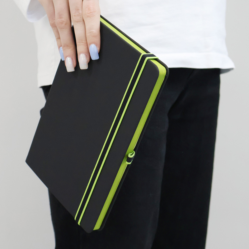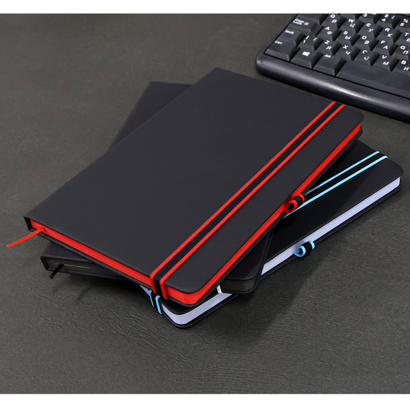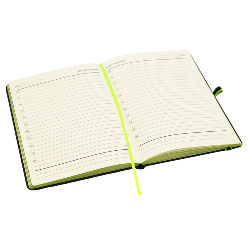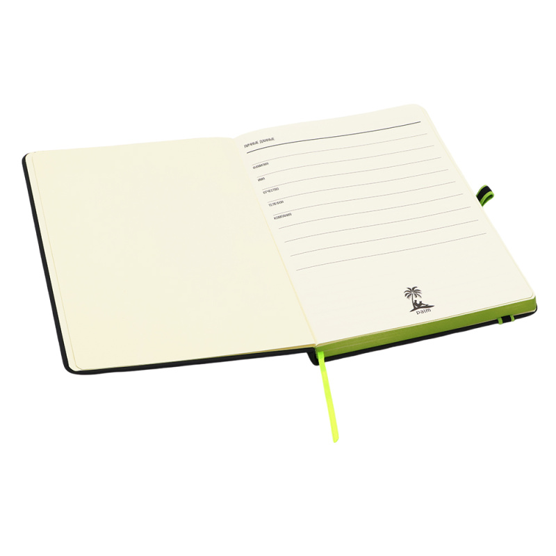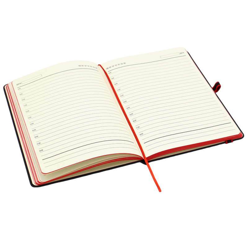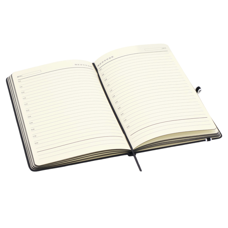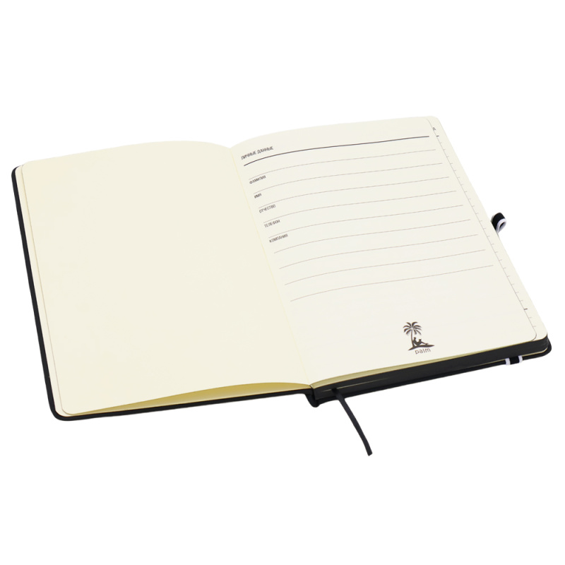 Ежедневник Sir Lewis — выполнен в твердой обложке. Имеет удобную, широкую резинку (1 см.) и держатель для ручки с ярким акцентом. Закладка и край — также в черном цвете. В начале ежедневника страничка с личными данными.