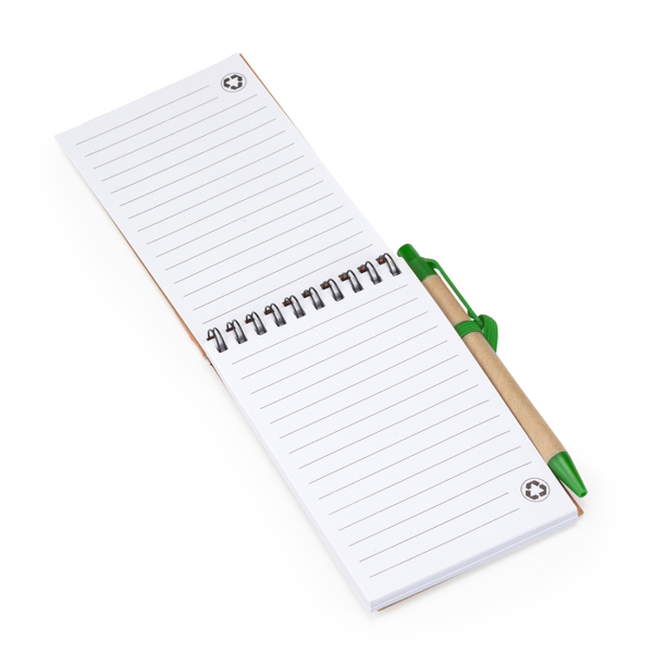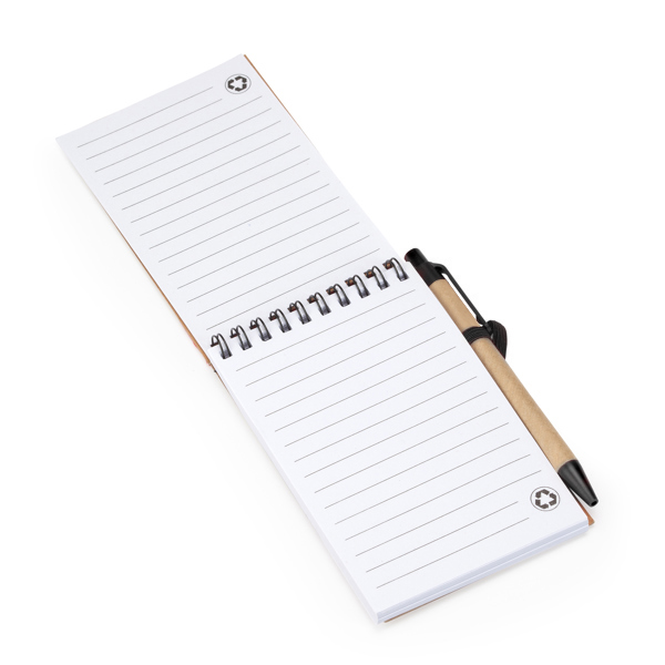 Блокнот на спирали с твердой обложкой из переработанного картона с эластичной застёжкой. Листы немелованные, бело-лунного оттенка, в линейку. В комплект входит подходящая ручка с синими чернилами. 70 листов.